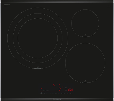 Bếp từ 3 bếp Bosch PID675HC1E thiết kế kiểu dáng Châu Âu với kính đen sang trọng, điều khiển DirectSelect truy cập trực tiếp đến 17 cấp độ nấu ăn.
