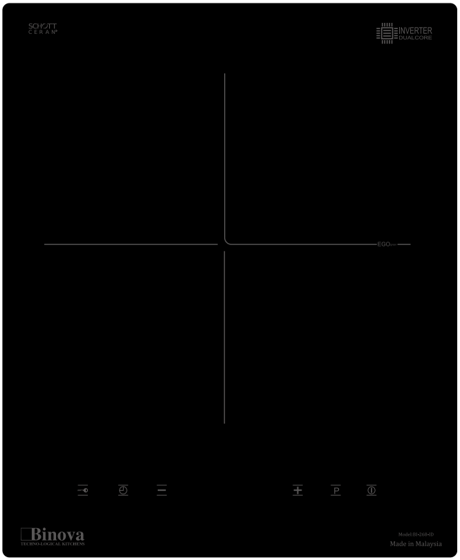 - Bếp sử dụng công nghệ đáy nồi tự nhận diện vùng nấu