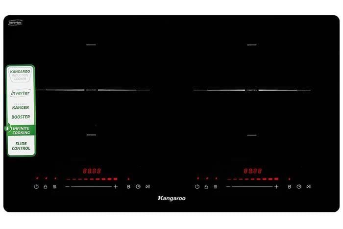 - Bếp từ Kangaroo hoạt động với tổng công suất của bếp đạt 4400W, vùng nấu trái 1800/2200W và vùng nấu phải 2000/2200W giúp nấu ăn nhanh, tiết kiệm thời gian.