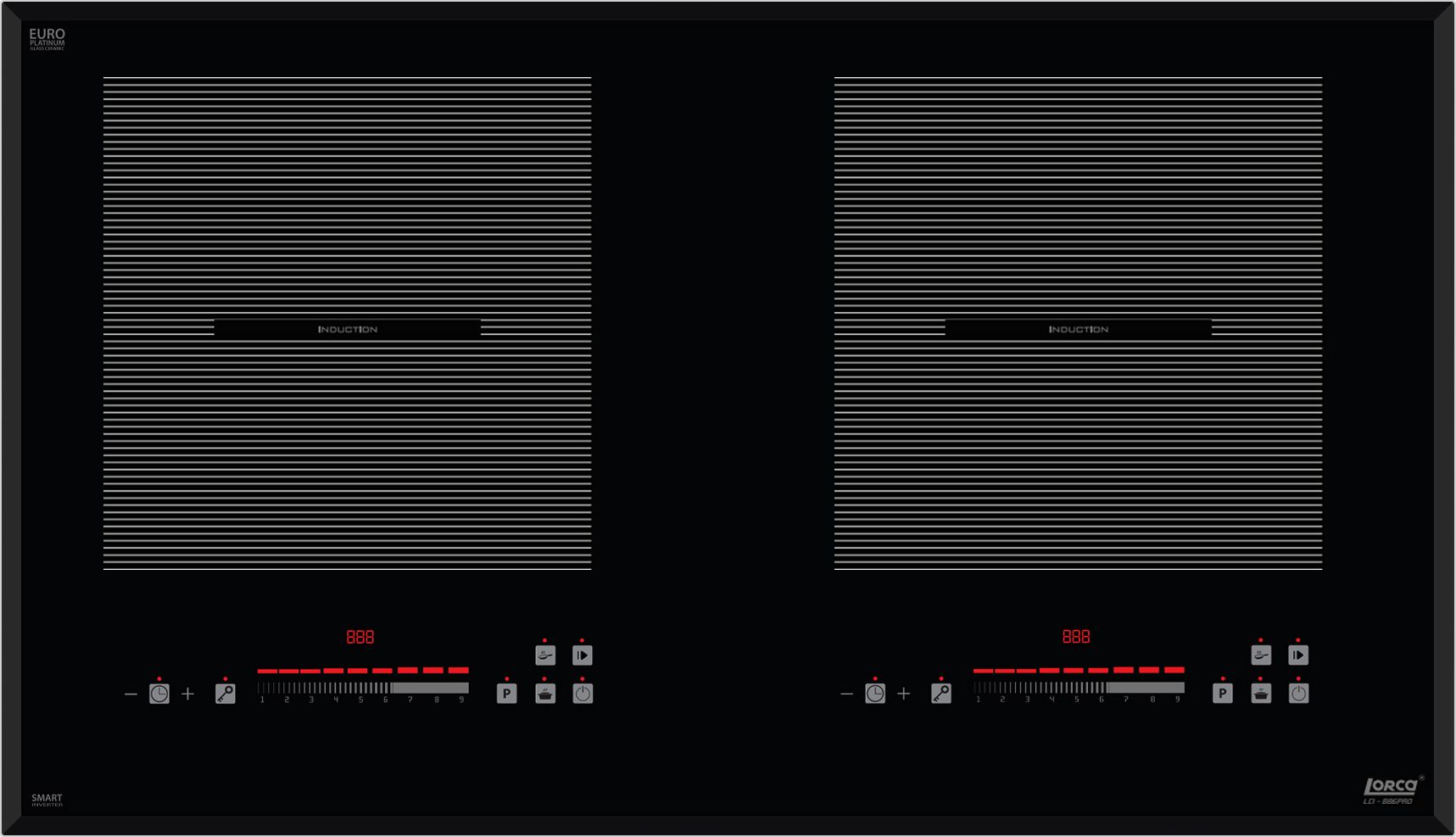 Bếp từ Lorca LCI-886 Pro sử dụng bảng điều khiển cảm ứng dạng Slider Control hiện đại với 9 cấp độ công suất nhiệt độ khác nhau, điều khiển dễ dàng bằng một ngón tay, mọi chương trình nấu đều được hiển thị qua đèn Led sắc nét để bạn điều chỉnh cho phù hợp với các món ăn. Bếp còn được trang bị thêm chức năng nấu thông minh là: tạm dừng, chiên xào và hâm nóng.
