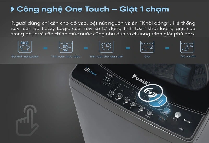 Máy giặt inverter này đượ ứng dụng nhiều công nghệ hiện đại: TurboW, giặt 1 chạm One Touch, Hẹn giờ giặt, Khóa trẻ em, Tự động vệ sinh lồng giặt i-clean, Suy luận ảo Fuzzy Logic