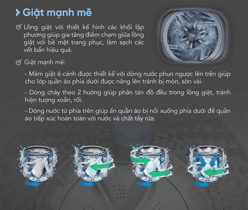 Máy sử dụng động cơ Universal cho khả năng vận hành ê ái và ổn định, không gây tiếng ồn lớn ảnh hưởng sinh hoạt, được ứng dụng công nghệ Inverter siêu tiết kiệm điện năng, giảm chi phí điện hàng tháng cho người dùng.