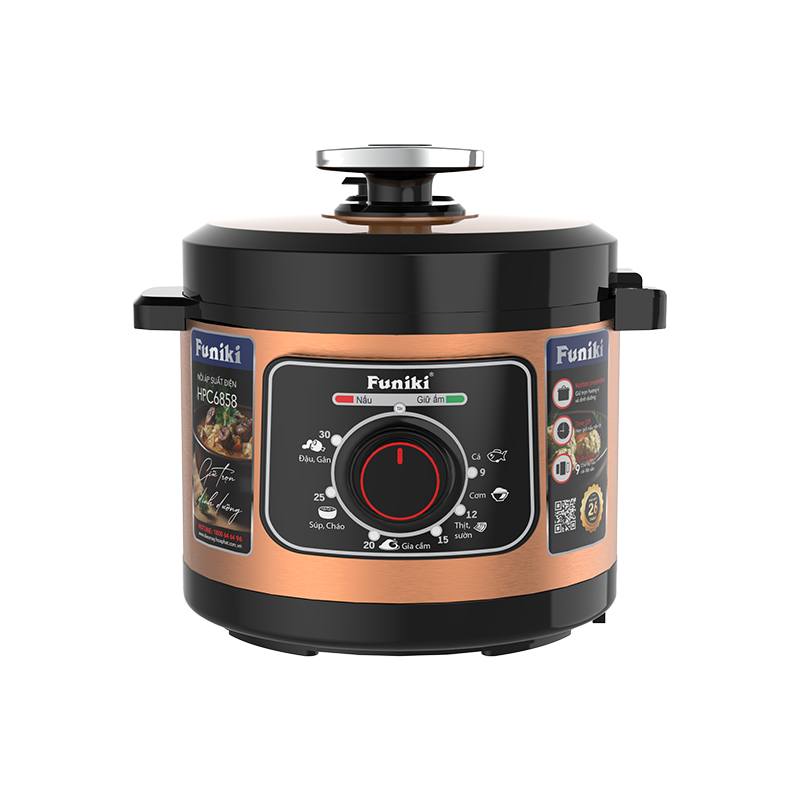Nồi áp suất điện 6L Funiki HPC6858 thuộc dòng sản phẩm nhà bếp Nồi áp suất điện Funiki Hòa Phát được nghiên cứu và phát triển bởi công ty Điện máy Gia Dụng hòa Phát – thuộc tập đoàn Hòa Phát.